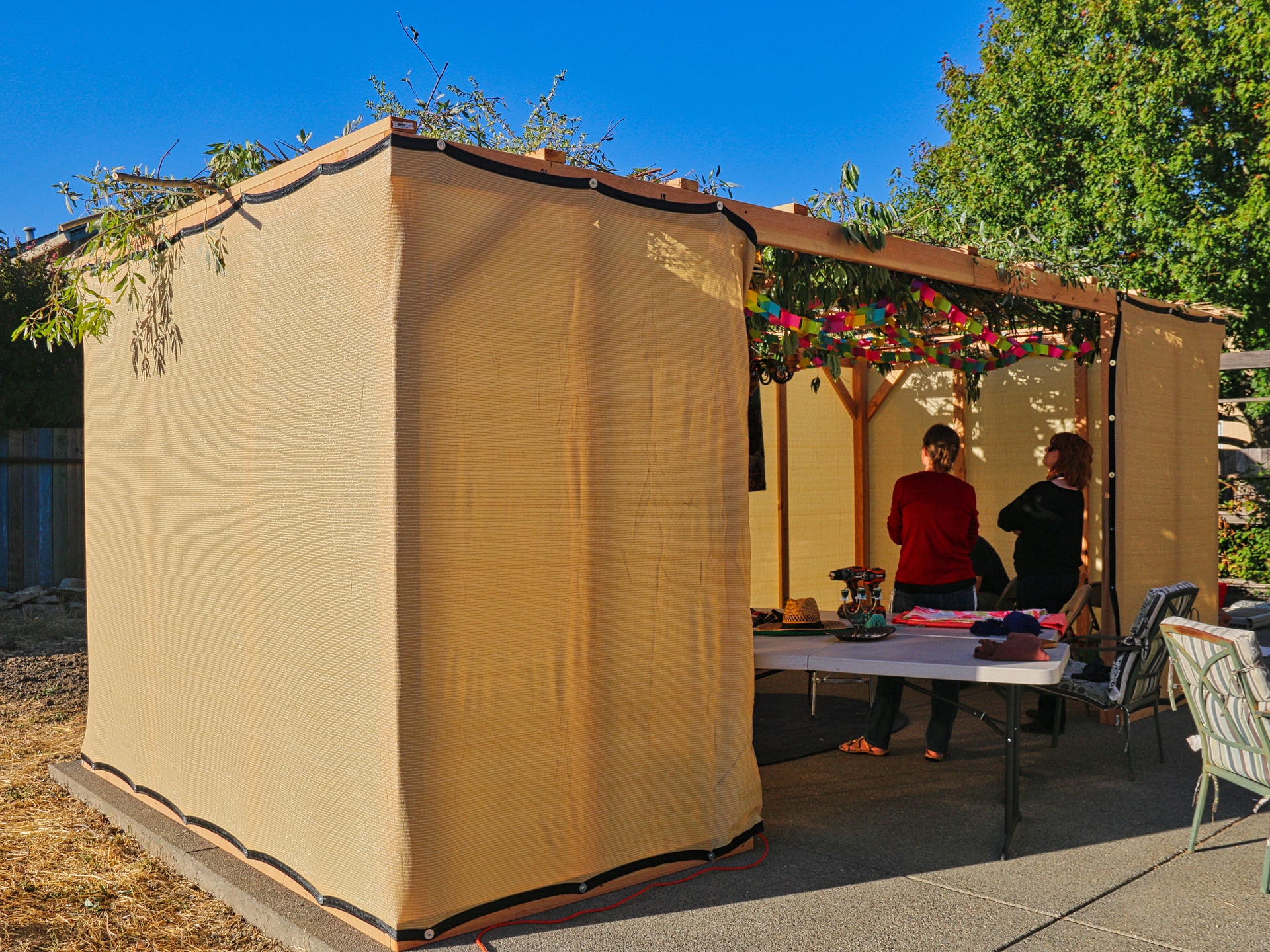 Banner image: Inside of a sukkah during Sukkot on Sept. 25, 2018, in Sonoma County. (HALLEL FELLOWSHIP PHOTO)